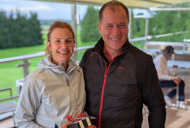 Den heutigen Turniersieg haben drei Golfer mit identischer Punktzahl denkbar knapp unter sich ausgemacht. Aufgrund des Ausgangs-Handicaps gratulieren wir der heutigen Gewinnerin Karin Huber zu 17 Nettopunkten und dem heutigen Tagessieg. Den wohlverdienten Preis erhielt sie aus den Händen unseres Vorstands Peter Rieder.